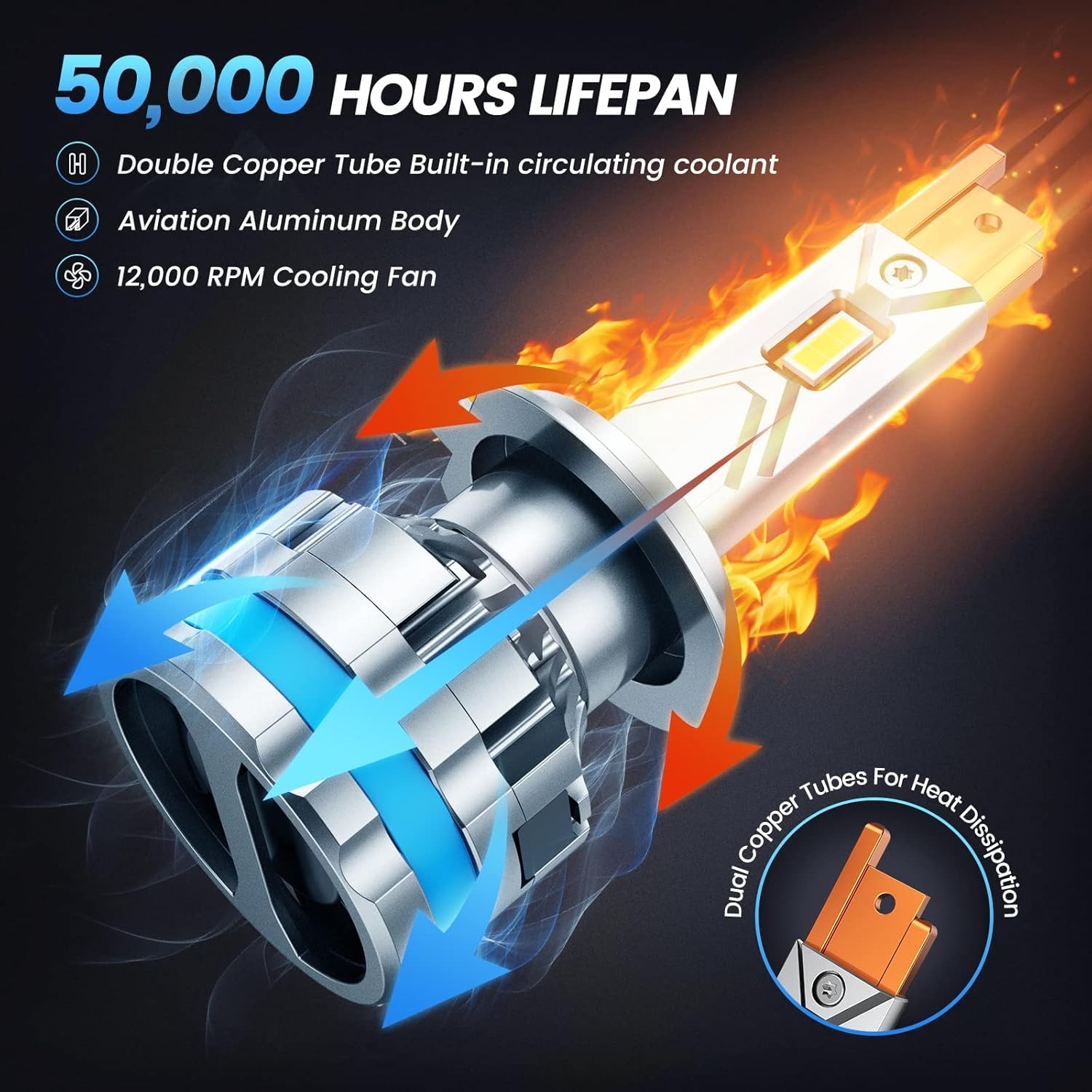Bombillas LED H7 de alto rendimiento con 150W de potencia y hasta 65.000 lúmenes, diseñadas para luz alta y baja. Proporcionan iluminación intensa y uniforme, mejorando la visibilidad y seguridad al conducir de noche o en condiciones climáticas adversas.